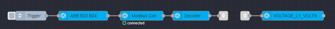 The image above here is an example of linked Modbus nodes on a Flow tab. This is the basic flow of data.